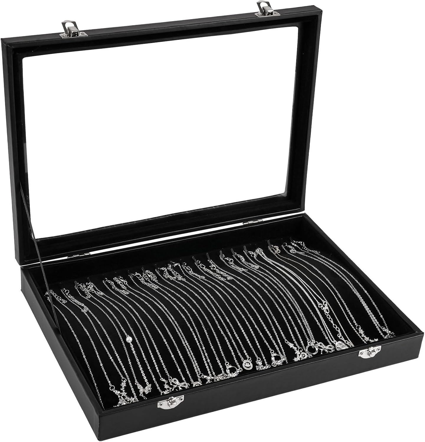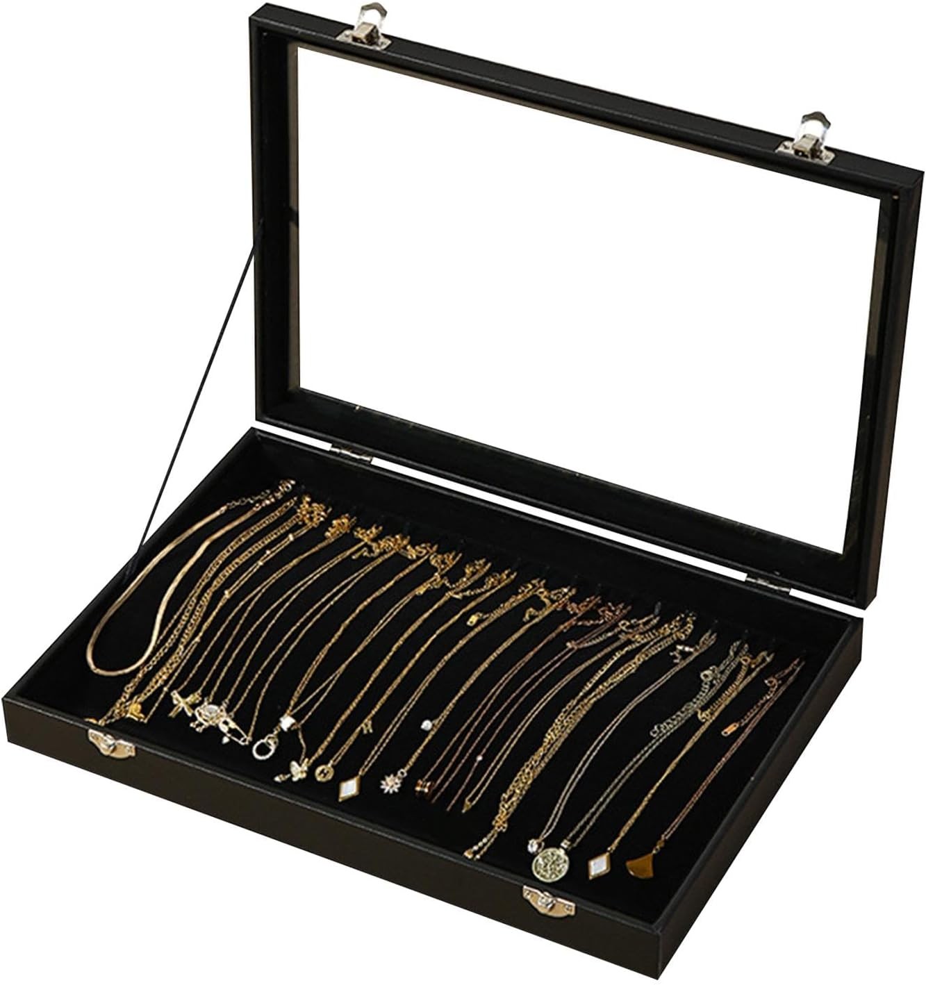 20 Hook Jewellery Organiser, Velvet Necklace Stand with Clear Lid, Lockable Dus