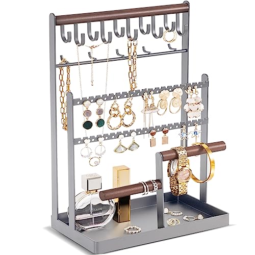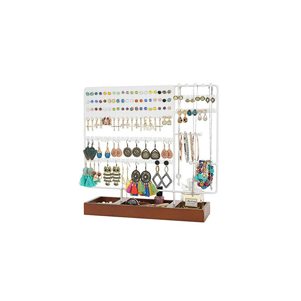 Jewellery Stand Holder Jewellery Organiser, Earring Stand Earring Organiser Earring Holder, Jewelry Display Rack with Wooden Tray for Earring, Ear