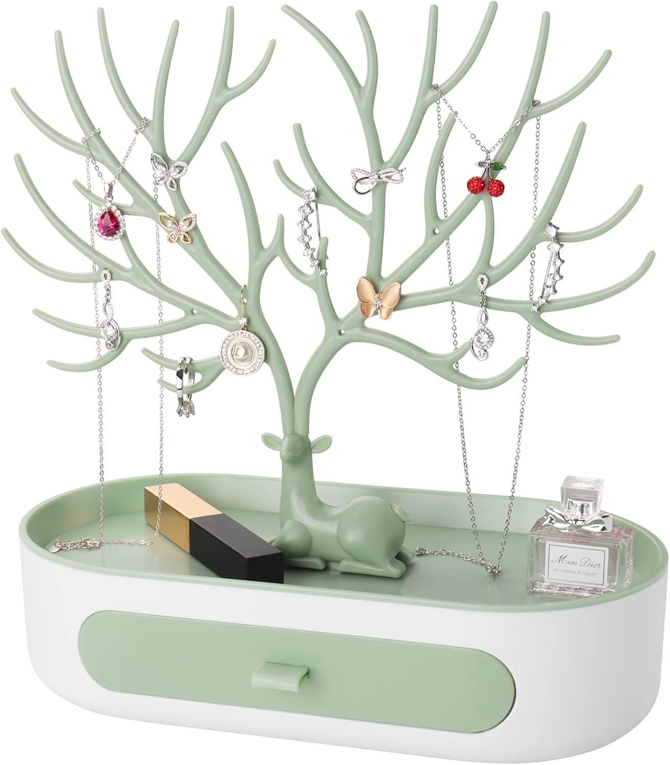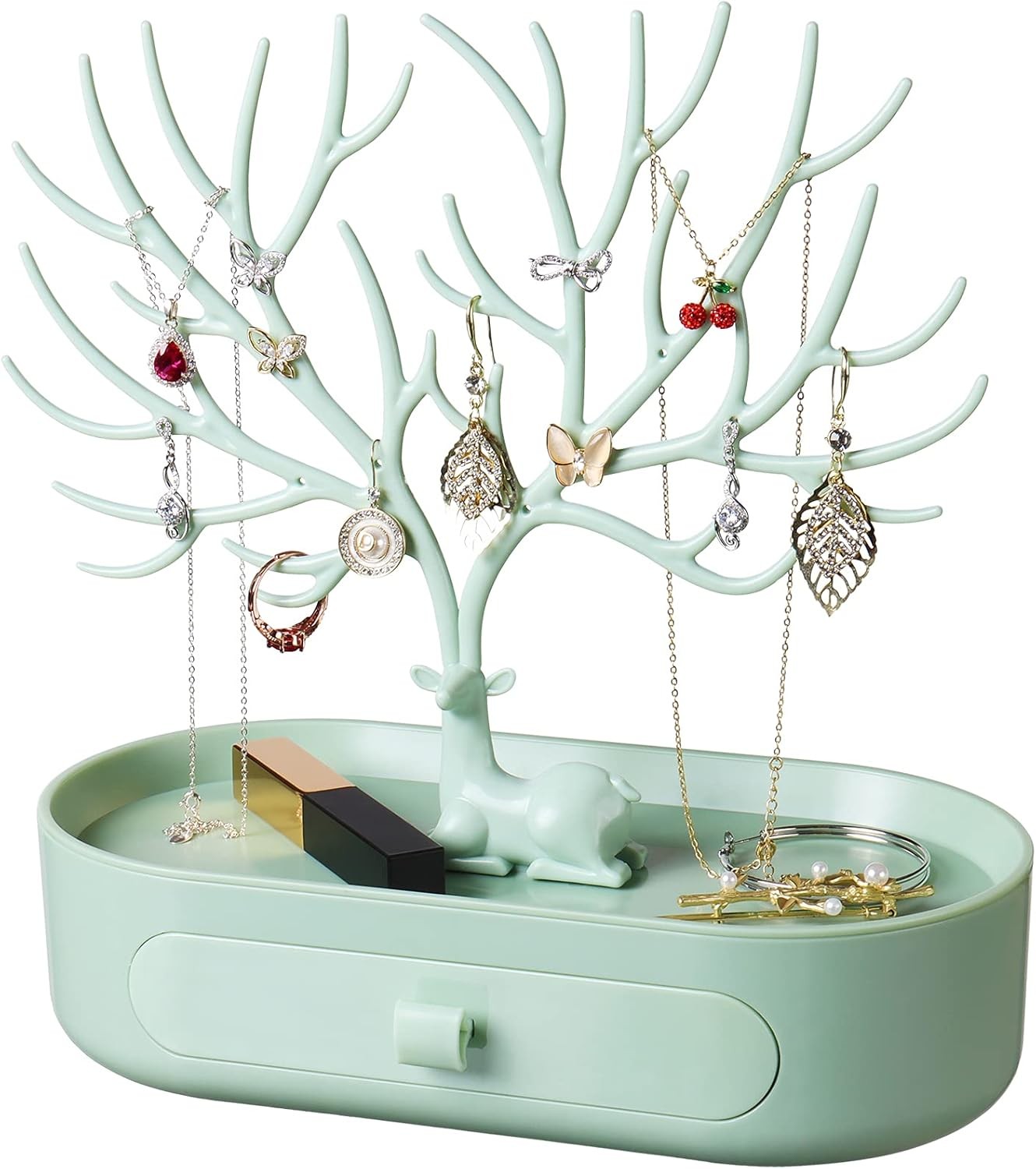 penobon Antler Jewellery Organiser Stand with Drawer, Plastic 3 in 1 Jewellery