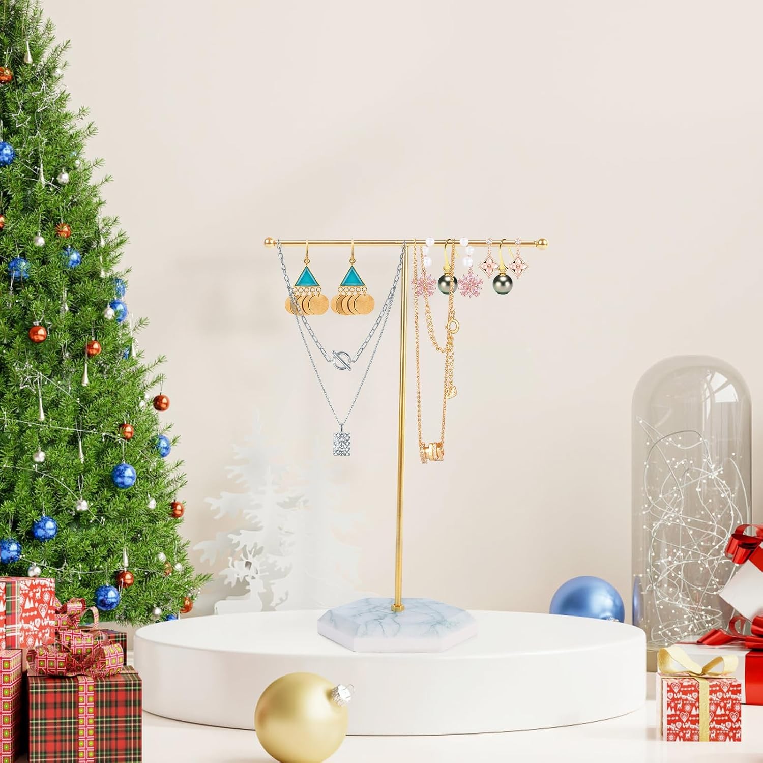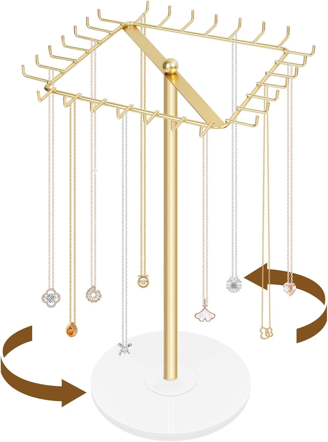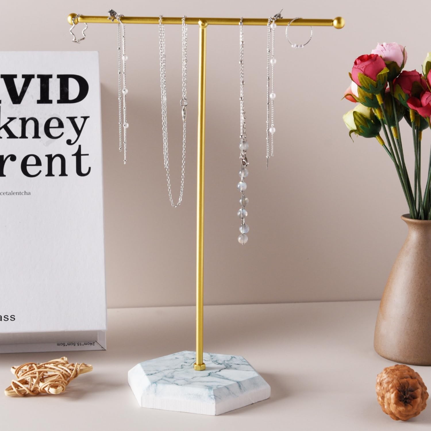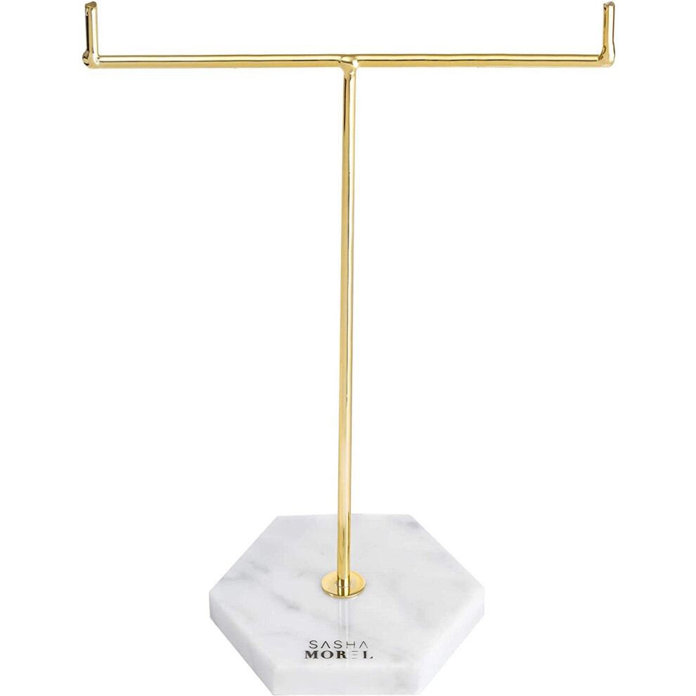 Sasha Morel Hanging Jewellery Organiser Stand with Marble Tray | Necklace Stand