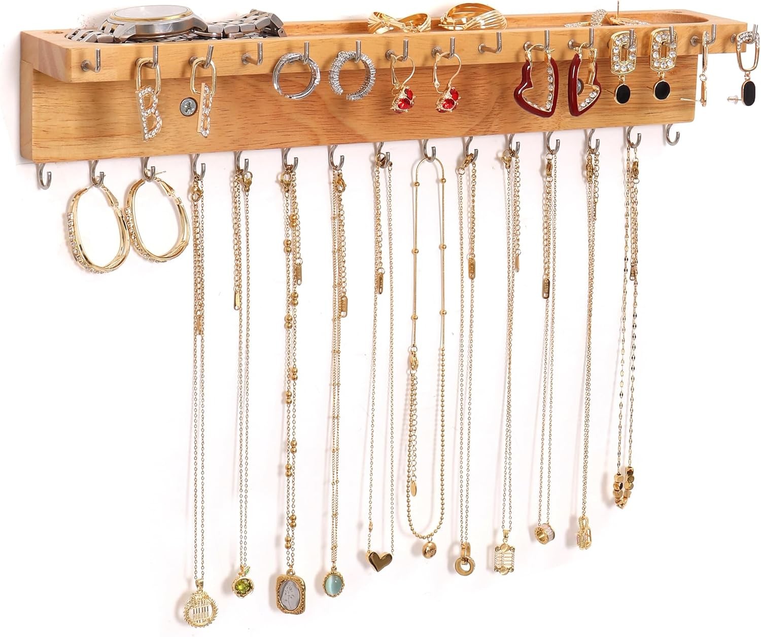 PHOENANCEE Oak Jewellery Organiser Stand, Display Holder Wall Mounted Hanging f