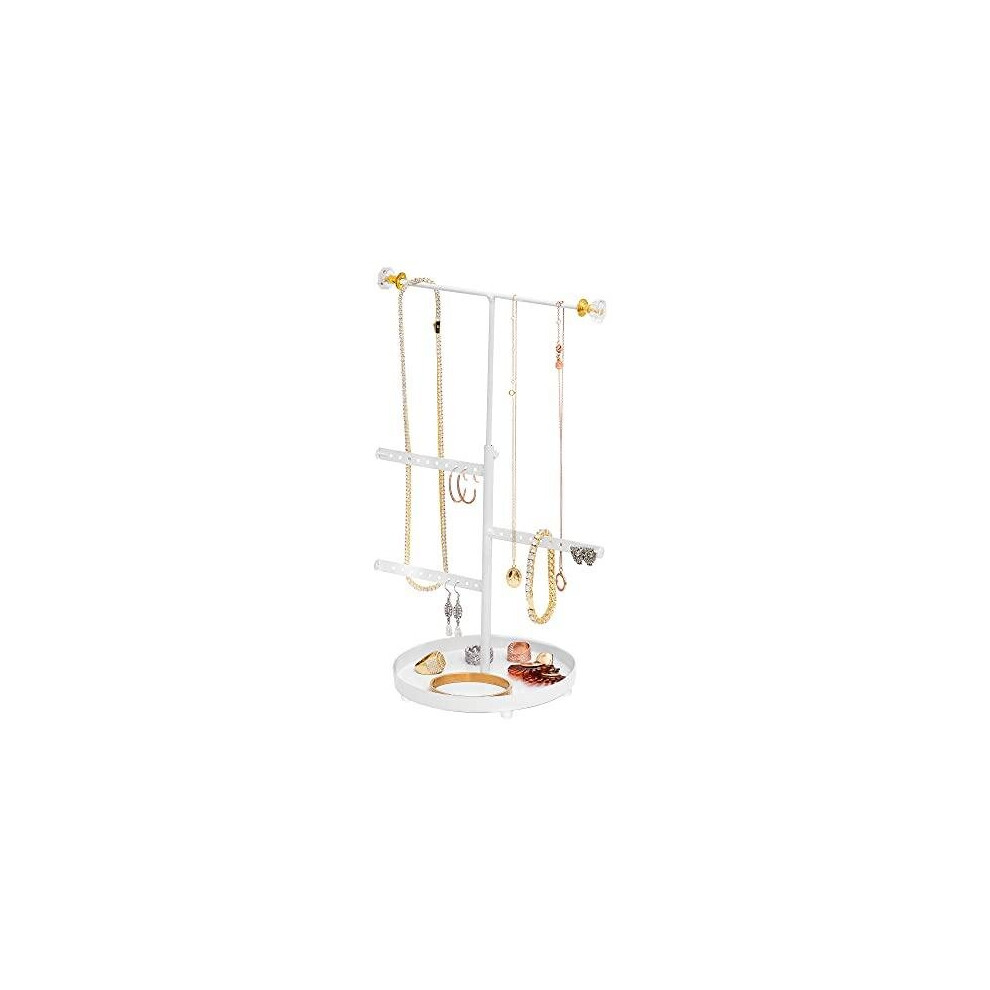 SONGMICS Jewellery Stand, Jewellery Organiser, Jewellery Display Stand, Metal Frame, Velvet Tray, Earring Bracelet Necklace Holder, for Studs, Rings, Gift Idea, Matte White JJS028W01