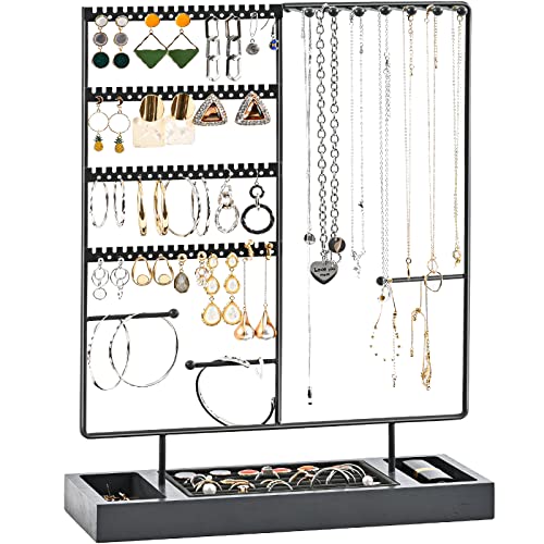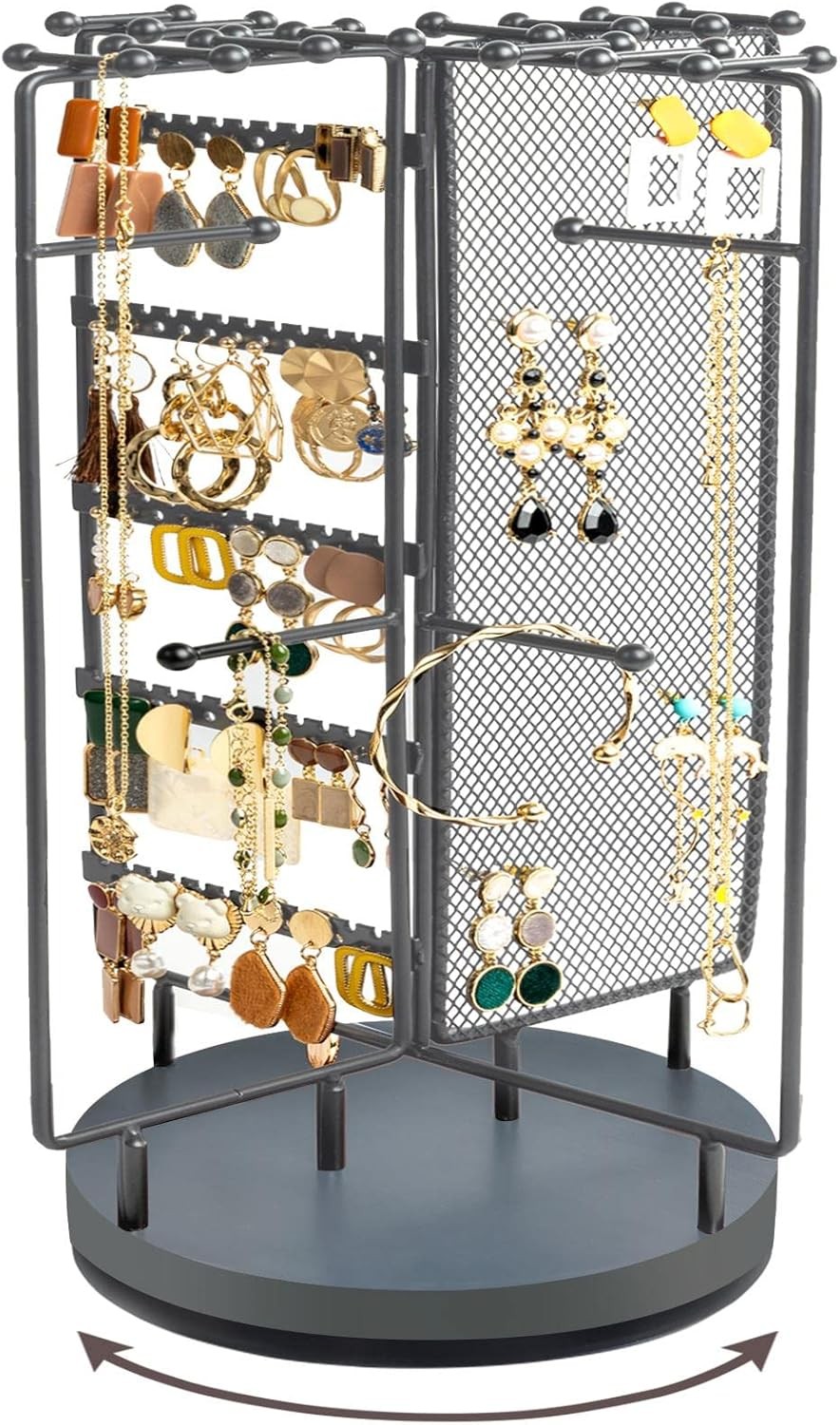 Jewellery Organiser Stand Earring Holder with 28 Necklace Hooks, 360 Rotating Necklace Holder Earrings Storage Rack Jewelry Tower Bracelet Holder,