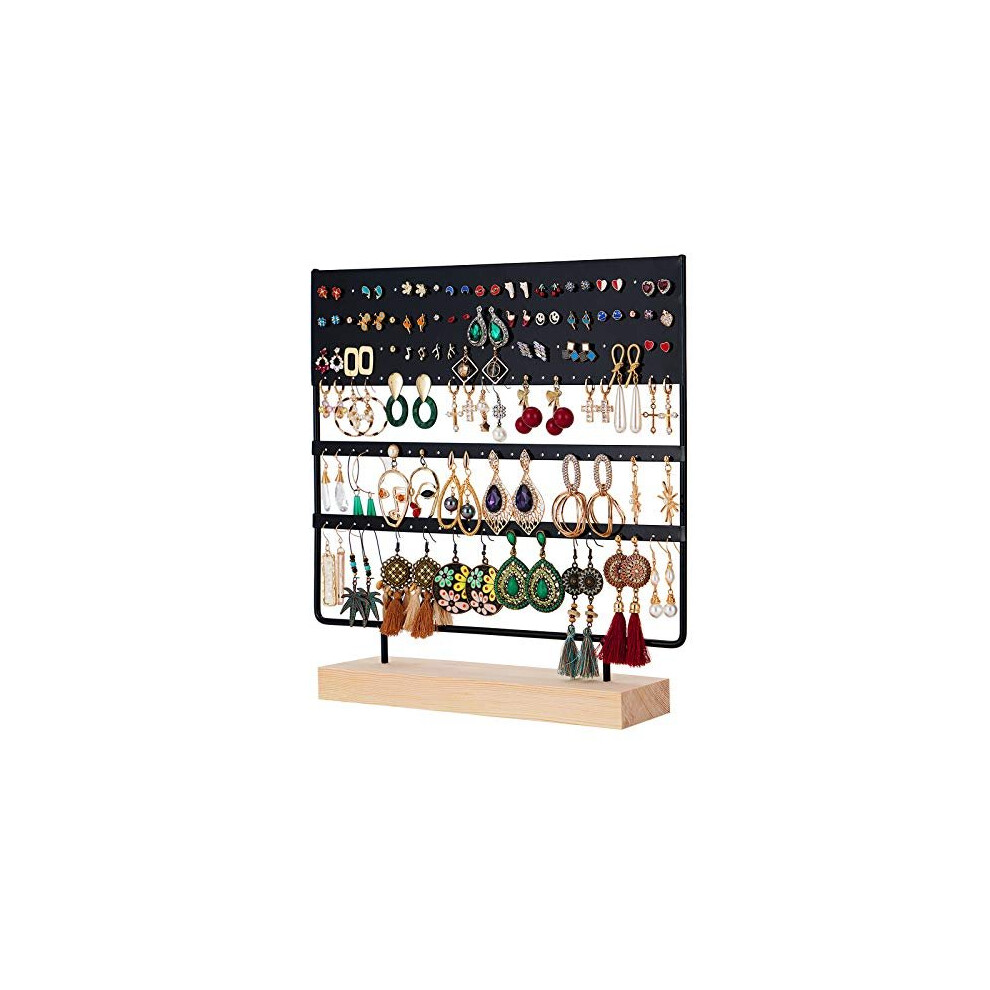 ProCase Jewellery Organiser Stand Earring Holder, 144 Holes Stud Earring Display Rack Necklace Storage Tower with Removable Wood Ring Tray for Necklaces Earrings Bracelets Rings -Black