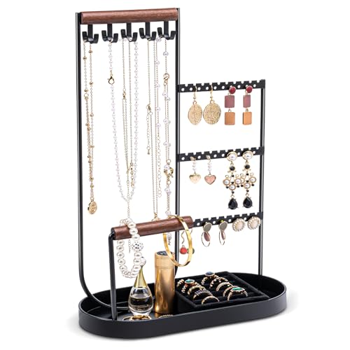 ProCase Jewellery Stand Jewellery Holder for Necklace Stud Earrings Jewellery Organiser Jewellery Stand with Velvet Ring Tray and Study Metal Frame, Jewellery Storage for Necklaces Bracelets Rings –