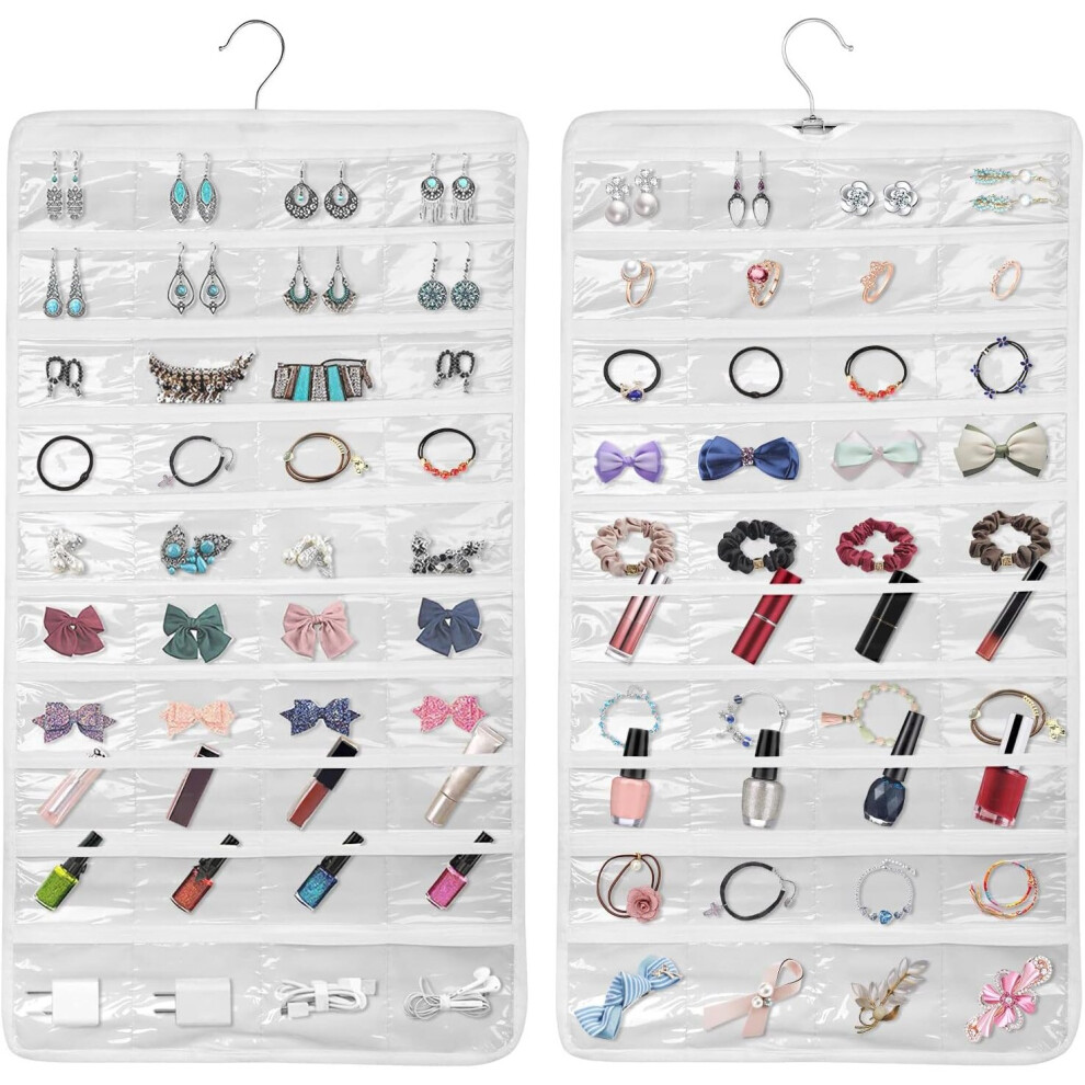 2Pcs Hanging Jewellery Organiser Display Stand, 80 Clear Pockets Double Sides