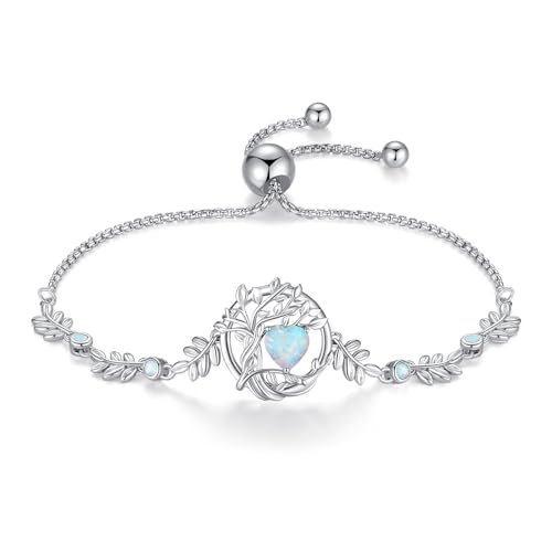 FANCIME Tree of life Opal Bracelet for Women Sterling Silver Tree Jewellery October Birthstone Gemstone Anniversary Birthday Christmas Gifts for Mom Girls Her