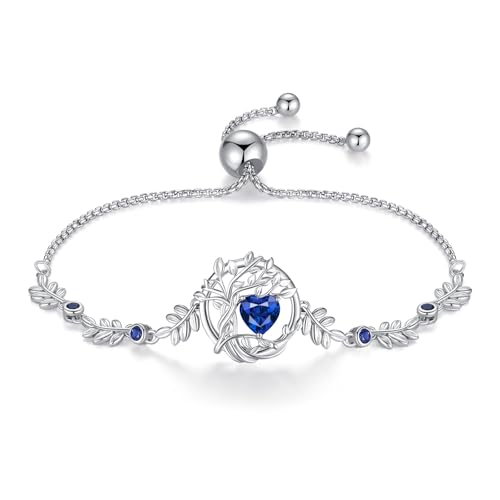 FANCIME Tree of life Sapphire Bracelet for Women Sterling Silver Tree Jewellery September Birthstone Blue Gemstone Anniversary Christmas Gifts for Girlfriend Wife Mom Her
