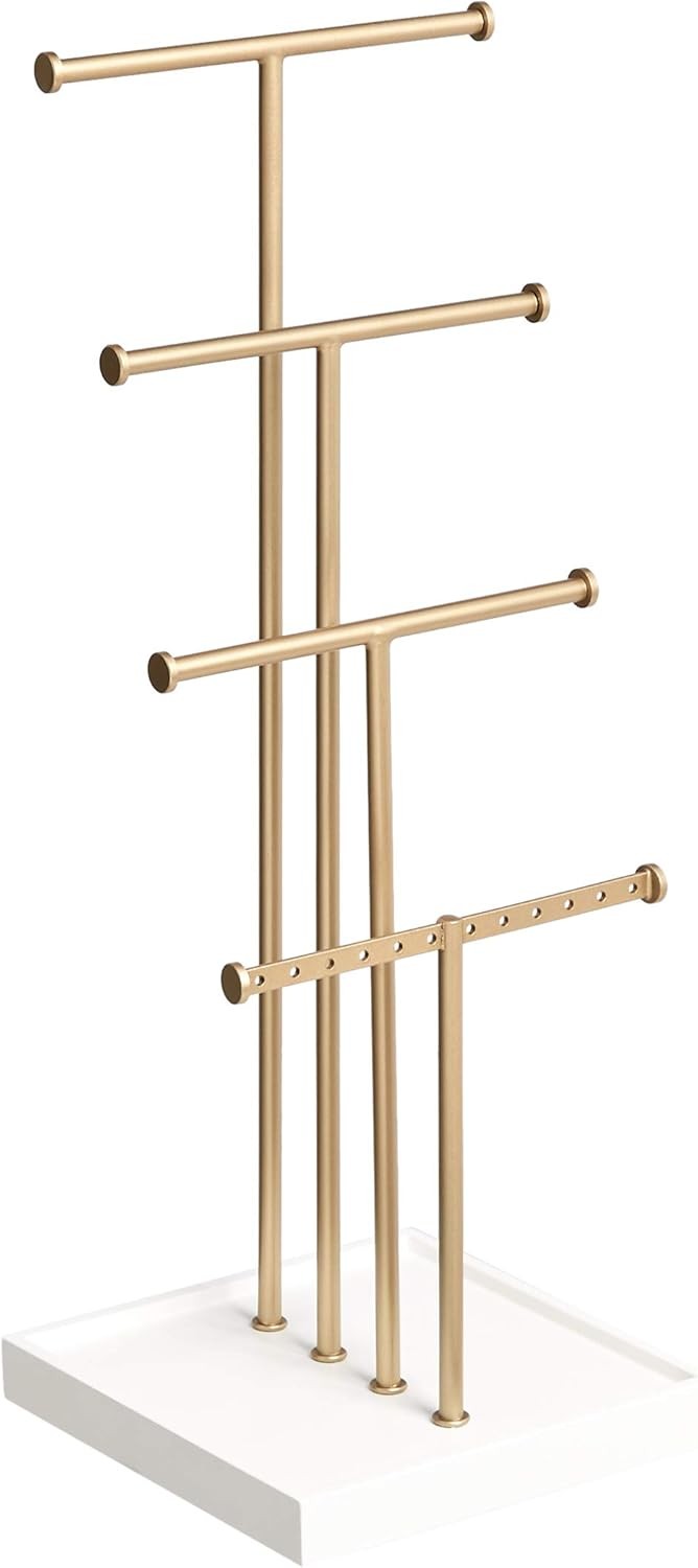 Amazon Basics Four-Tiered Jewellery Tree Stand - White/Brass