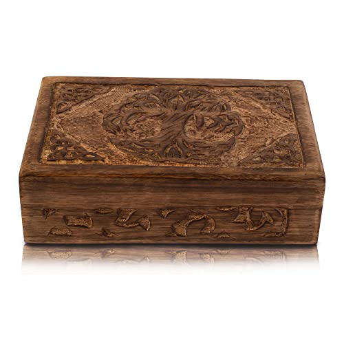 Great Birthday Gifts Handmade Decorative Wooden Jewellery Keepsake Box Tree Of Life Carving Jewellery Organizer Treasure Chest Trinket Holder Watch Storage Lock Box Housewarming Gift