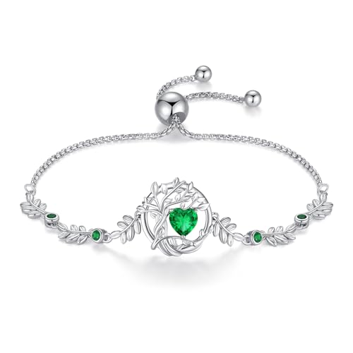 FANCIME Tree of life Emerald Bracelet for Women Sterling Silver Tree Jewellery May Birthday Green Gemstone Anniversary Christmas Gifts for Girlfriend Wife Mom Her