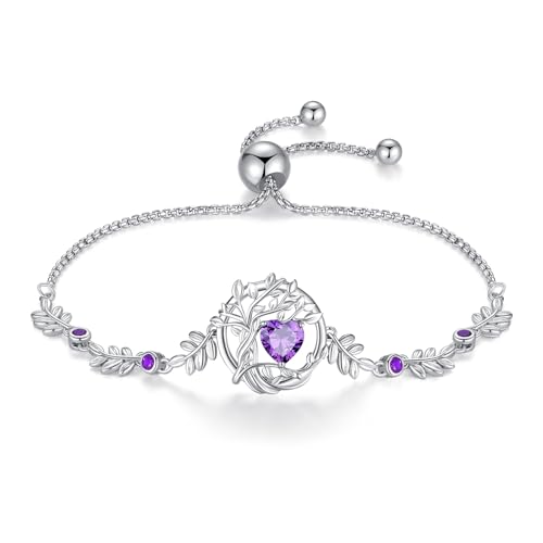 FANCIME Tree of life Amethyst Bracelet for Women Sterling Silver Tree Jewellery February Birthstone Purple Gemstone Anniversary Birthday Christmas Gifts for Wife Girls Her