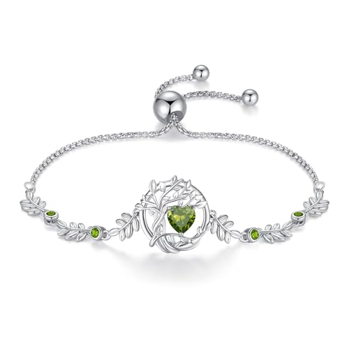 FANCIME Tree of life Peridot Bracelet for Women Sterling Silver Tree Jewellery August Birthstone Green Gemstone Anniversary Birthday Christmas Gifts for Wife Mom Her