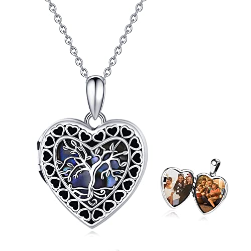 Midir&Etain Tree of Life Locket Necklace 925 Sterling Silver Heart Photo Pendant Necklace that Holds Pictures Family Tree Jewellery Gifts for Women Girls Birthday