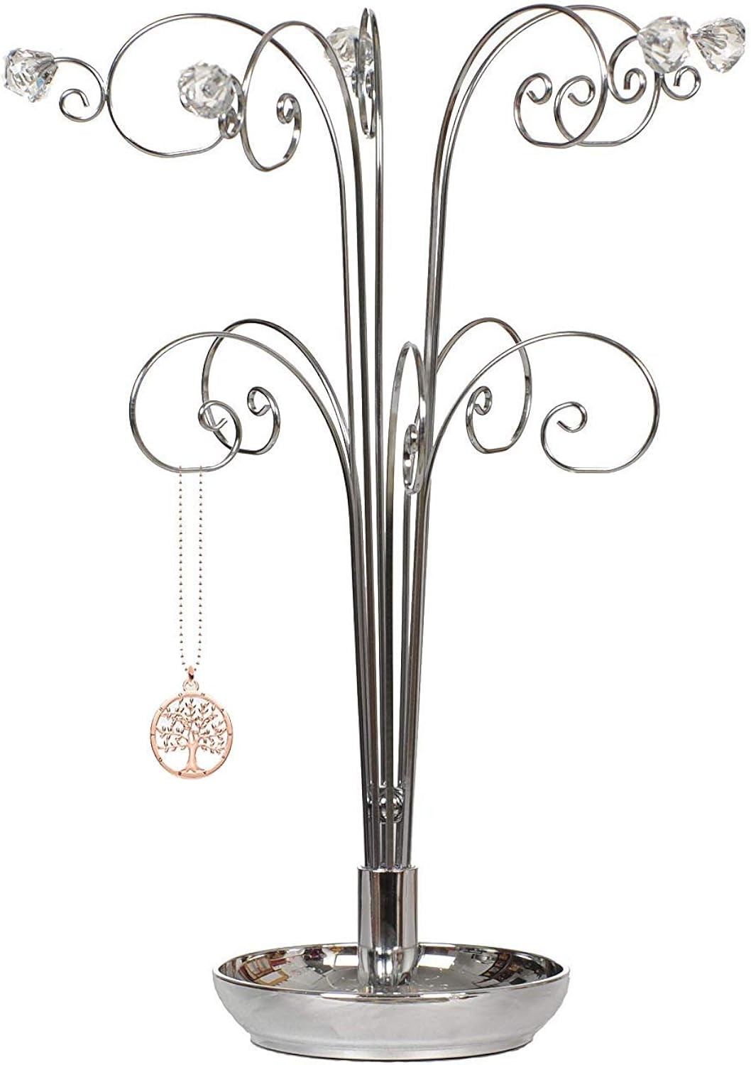 HOHIYA 15 Inch Chrome Silver Jewellery Tree Stand Holder for Necklaces Bracelets
