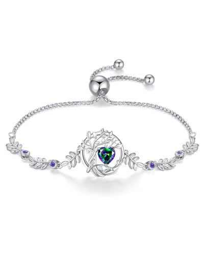 FANCIME Tree of life Alexandrite Bracelet for Women Sterling Silver Tree Jewellery June Birthstone Charm Bracelet Red Gemstone Anniversary Birthday Christmas Gifts for Wife Girls Her