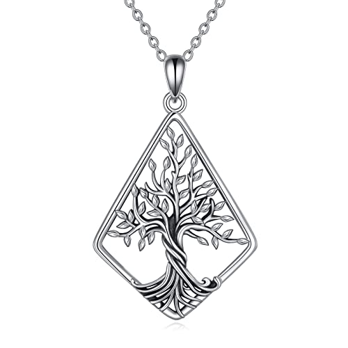 URONE Tree of Life Necklace 925 Sterling Silver Tree of Life Pendant Necklace Life Tree Jewellery Gift for Women