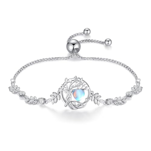 FANCIME Tree of life Moonstone Bracelet for Women Sterling Silver Tree Jewellery June Birthstone Rainbow Gemstone Anniversary Birthday Christmas Gifts for Wife Mom Her