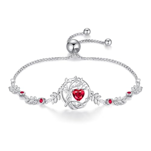 FANCIME Tree of life Ruby Bracelet for Women Sterling Silver Tree Jewellery July Birthstone Red Gemstone Anniversary Birthday Christmas Gifts for Wife Mom Her