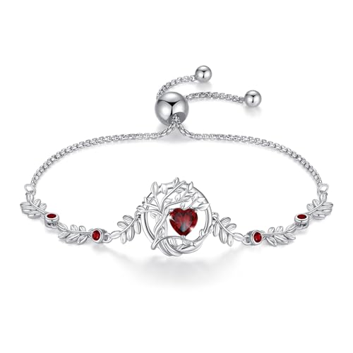 FANCIME Tree of life Garnet Bracelet for Women Sterling Silver Tree Jewellery January Birthstone Charm Bracelet Red Gemstone Anniversary Birthday Christmas Gifts for Wife Girls Her