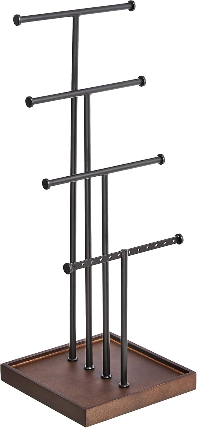 Amazon Basics Four-Tiered Jewellery Tree Stand - Walnut/Black
