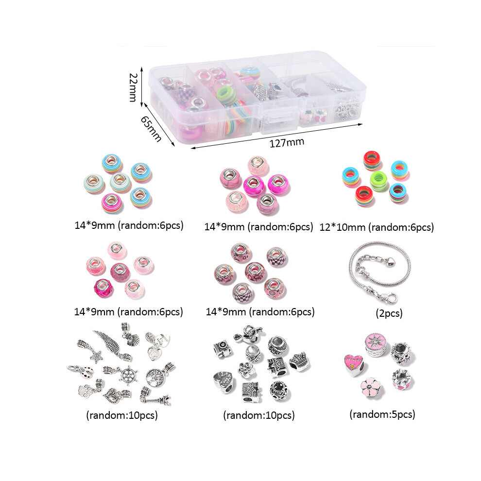55pcs/box Acrylic European Bead Big Hole Beads Kit Jewelry Making Kits Double Cores Rondelle For Children Christmas Gift