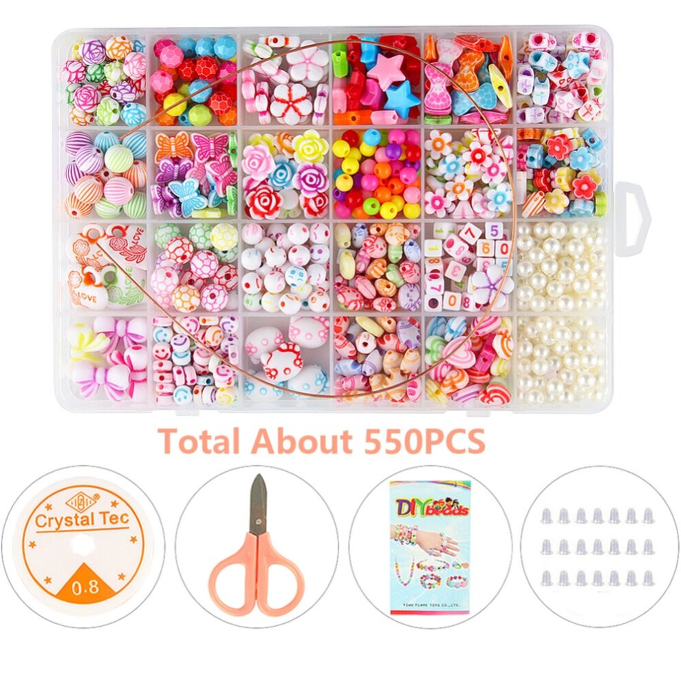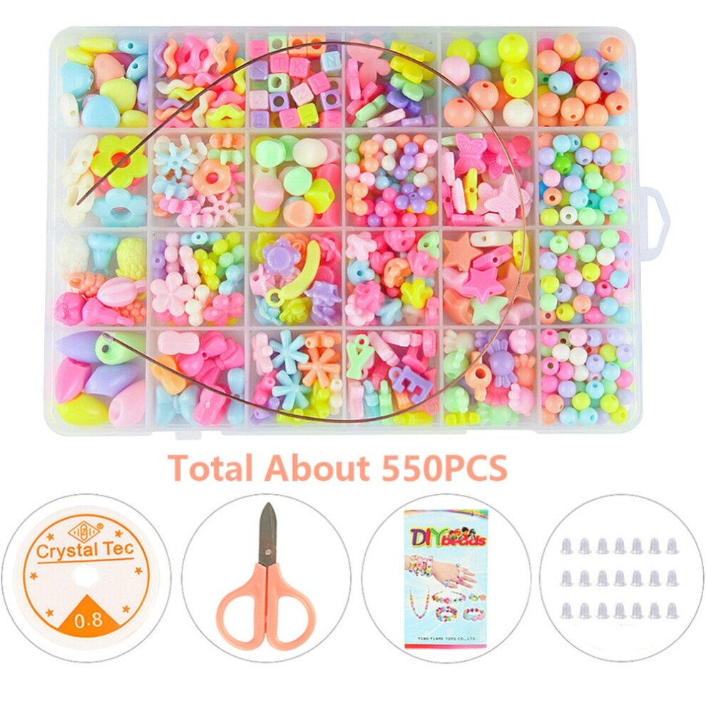 550pcs Mix Acrylic Beads Kits Craft Beads For Jewelry Making Kits Kids Girls Bracelet Necklace Hair Ring DIY Sets