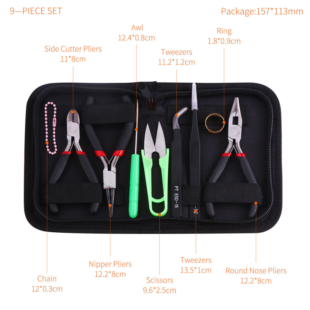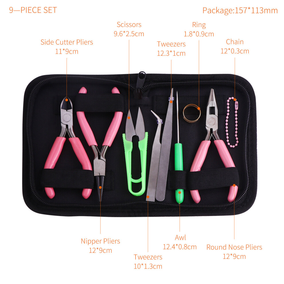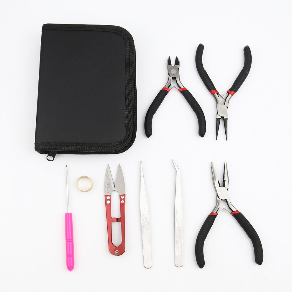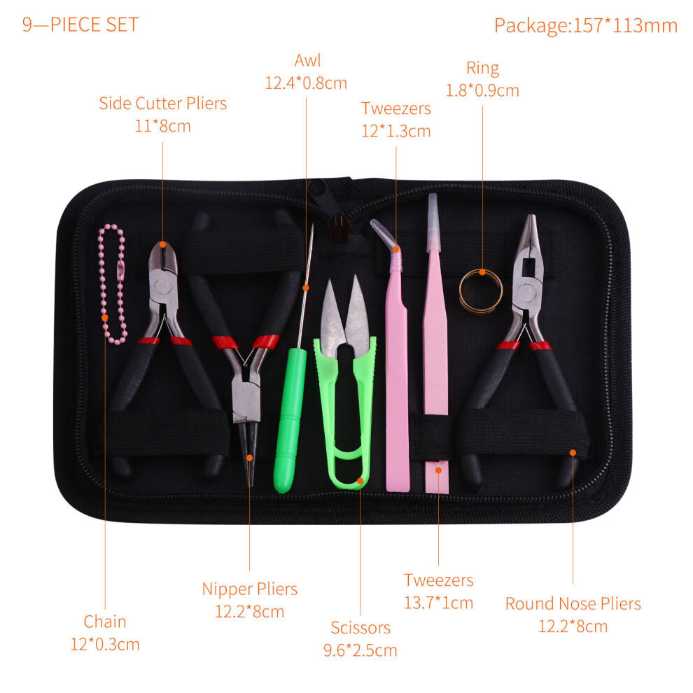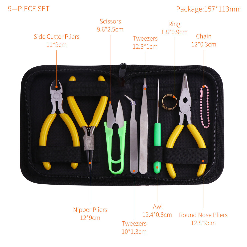 DIY Jewelry Making Tools Set Kits Nose Pliers Side Cutting Pliers Wire Cutter Scissor Beading Tweezers with PU Bag