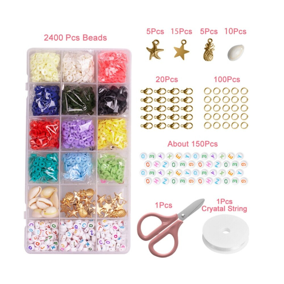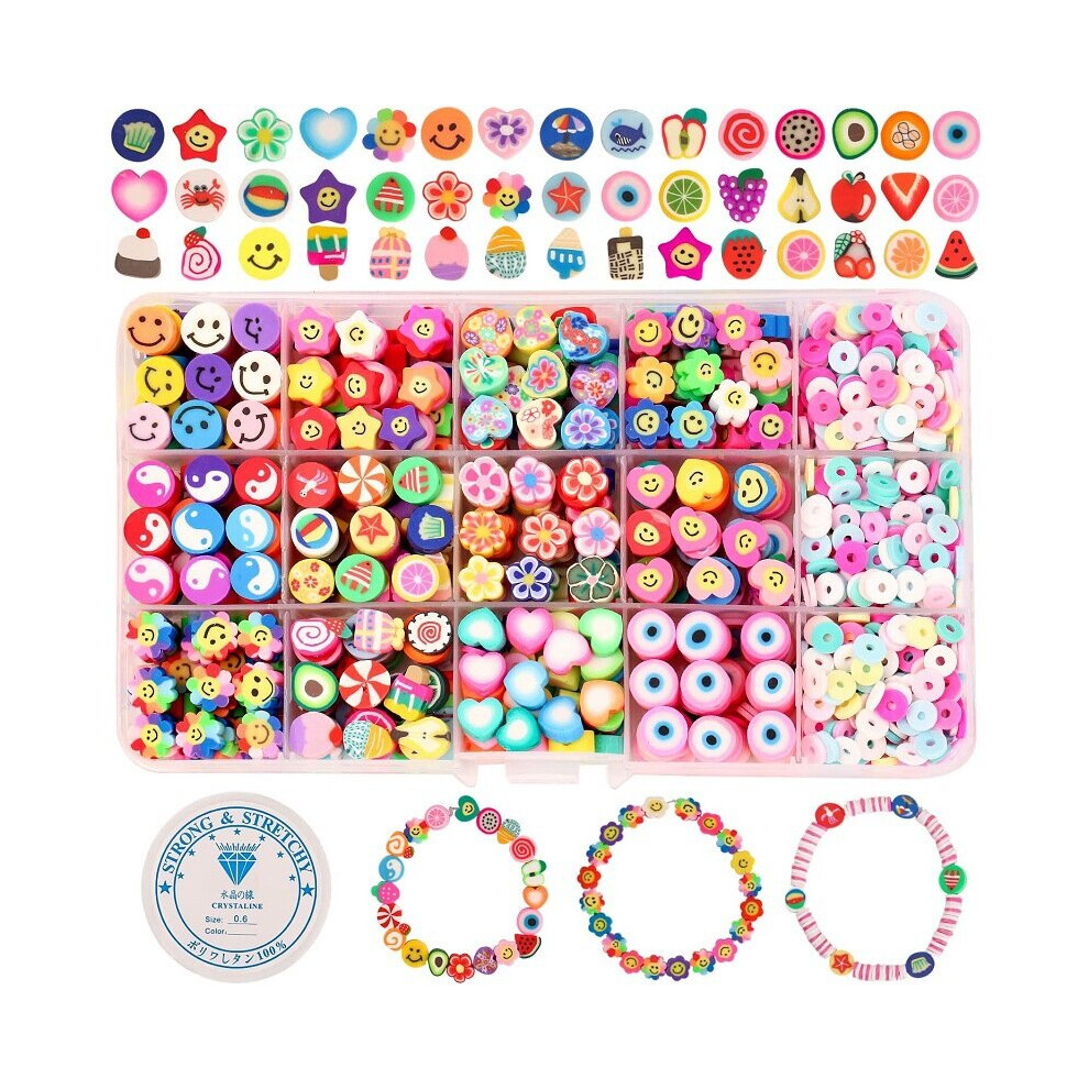 15 Style Mix Polymer Clay Acrylic Jewelry Making Kits Soft Pottery Spacer ?Beads For Kids Girls Bracelet Necklace DIY Kits Sets