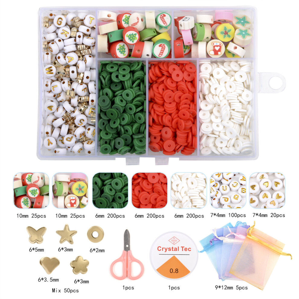 320-1600pcs/Box 6mm Flat Round Polymer Clay Spacer Beads Kit Jewelry Making Kits DIY Bracelets Earring Set Gift For Children
