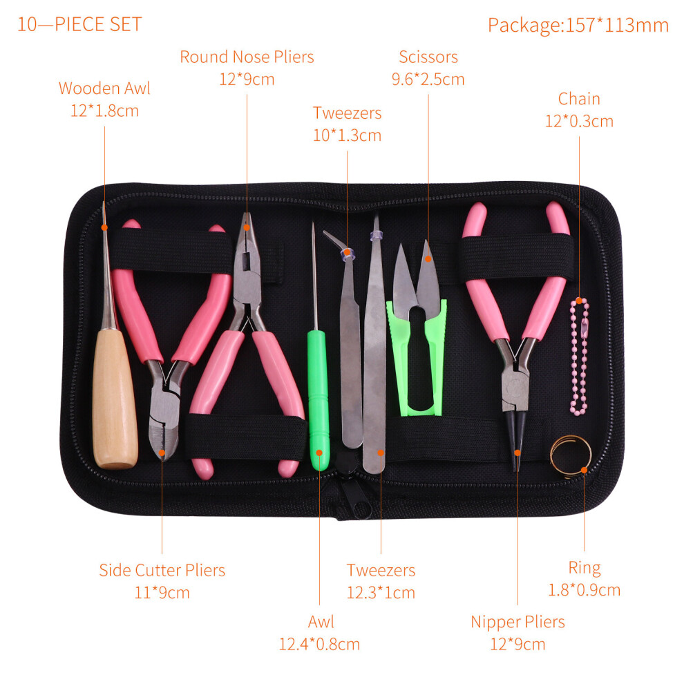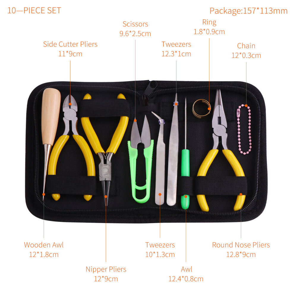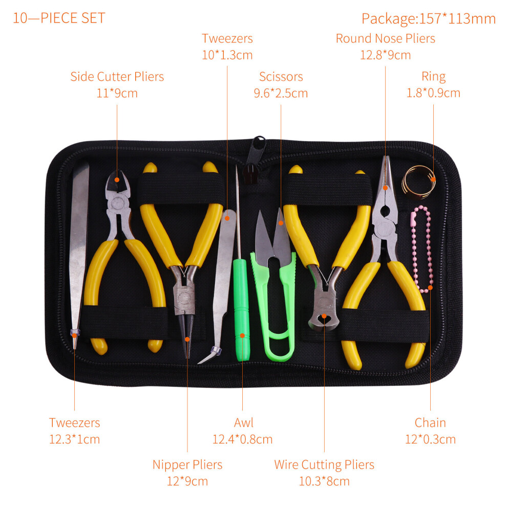 10pcs/set Jewelry Making Tool Kits Pliers Sets With Round Nose Plier Side Cutting Pliers Wire Cutter Scissor Beading Tweezers