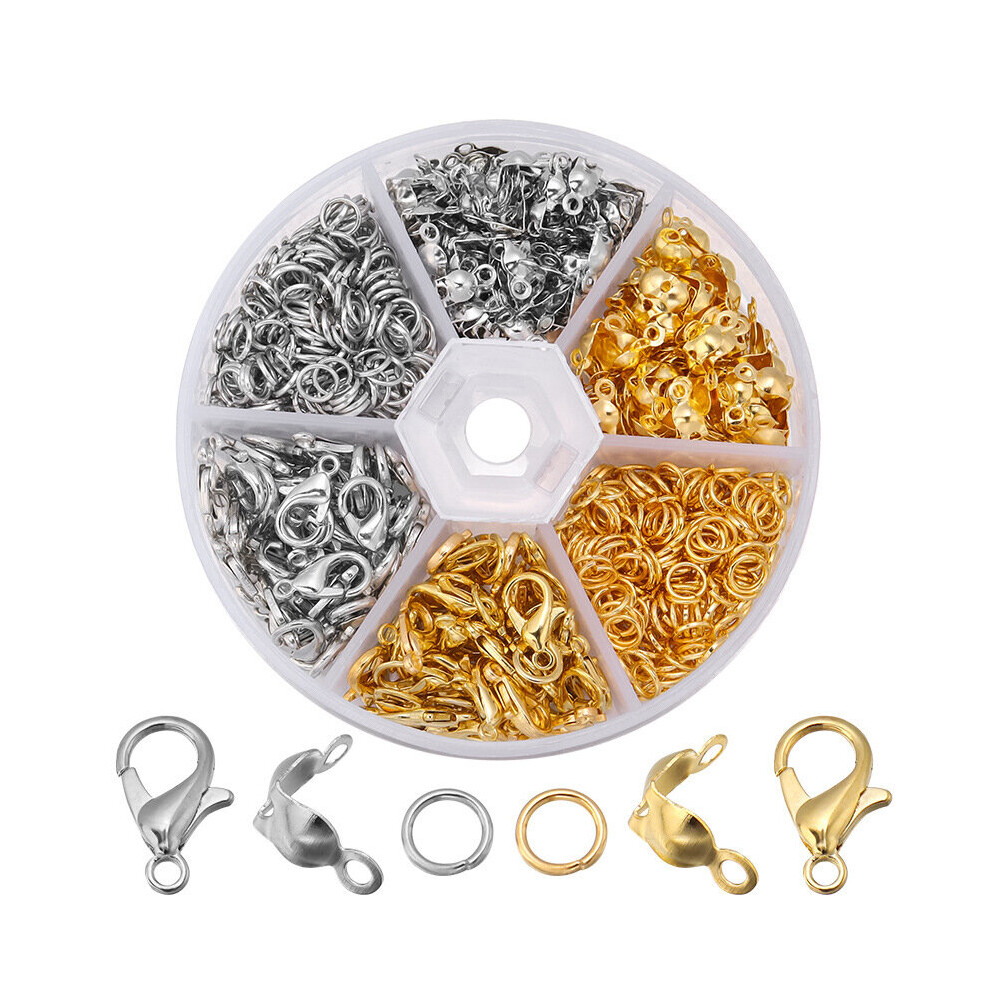 450Pcs/Box Jewelry Making Kits Lobster Clasp Open Jump Rings End Crimps Beads Box Bracelet Necklace Findings