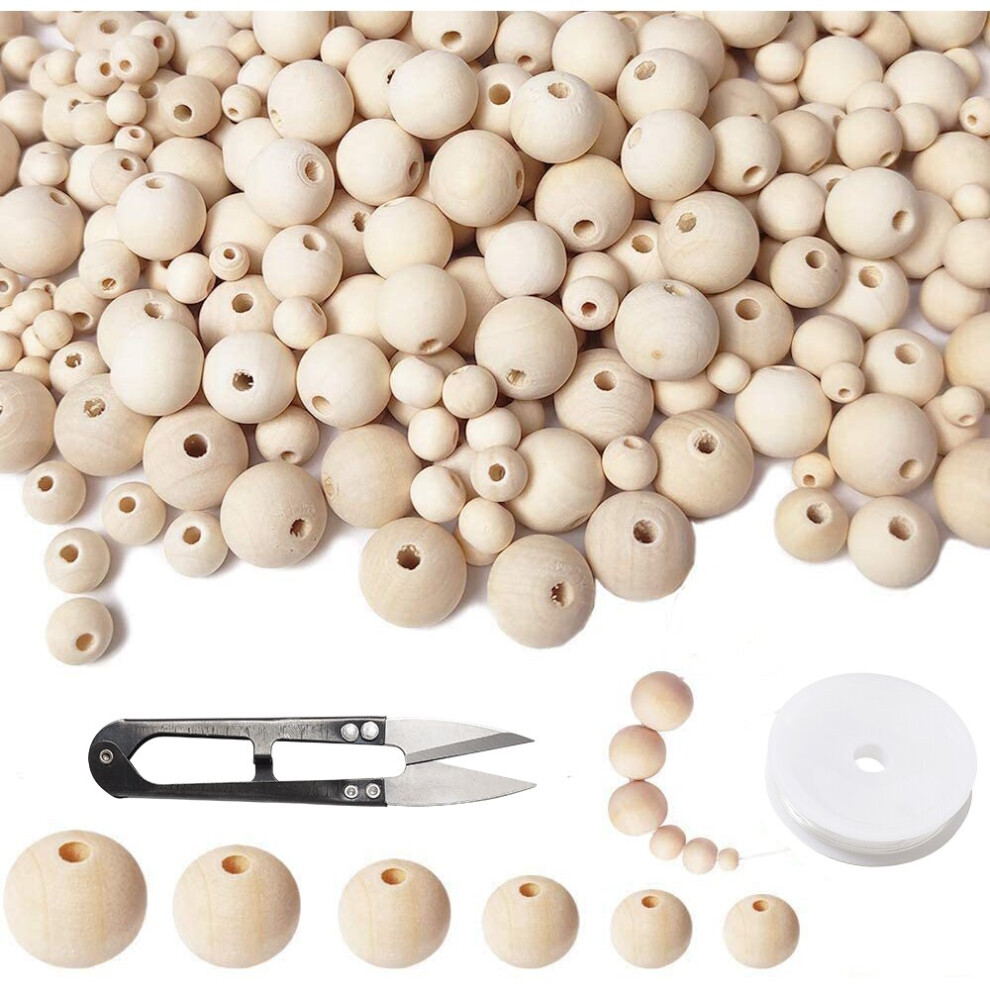 550Pcs Natural Wooden Beads Jewelry Making Kits 8/10/12/14/16/18mm Unfinished Wood Beads for Jewelry DIY Crafts Garland
