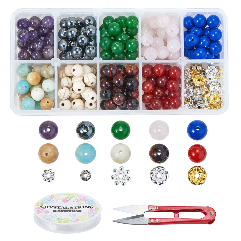 DIY Jewelry Stretch Bracelets Making Kits With Natural Stone Round Beads Stainless Steel Scissors Thread and Spacer Beads