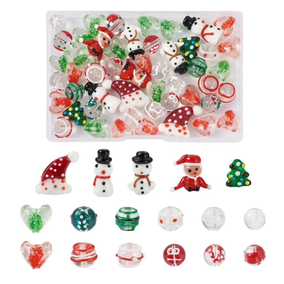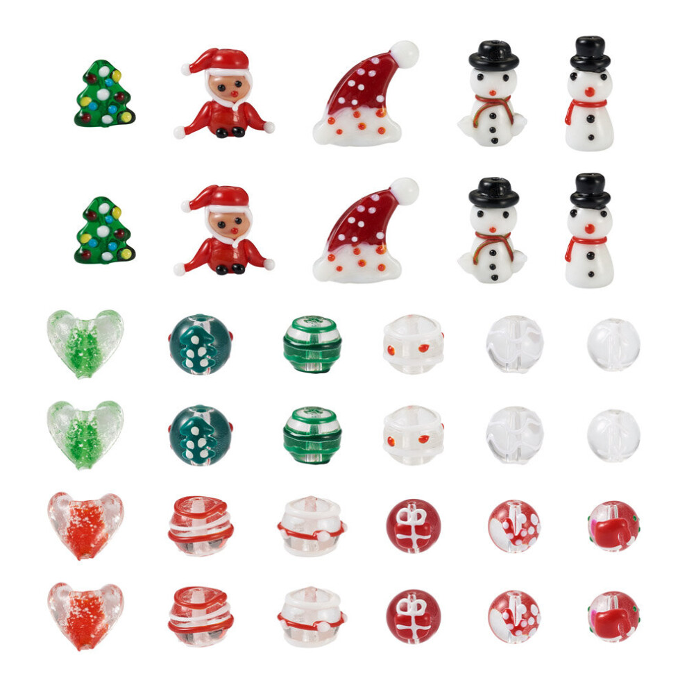 50Pcs/box Beads Jewelry Making Finding Kits Lampwork & Transparent Glass Beads For Christmas Theme Necklace Supplies