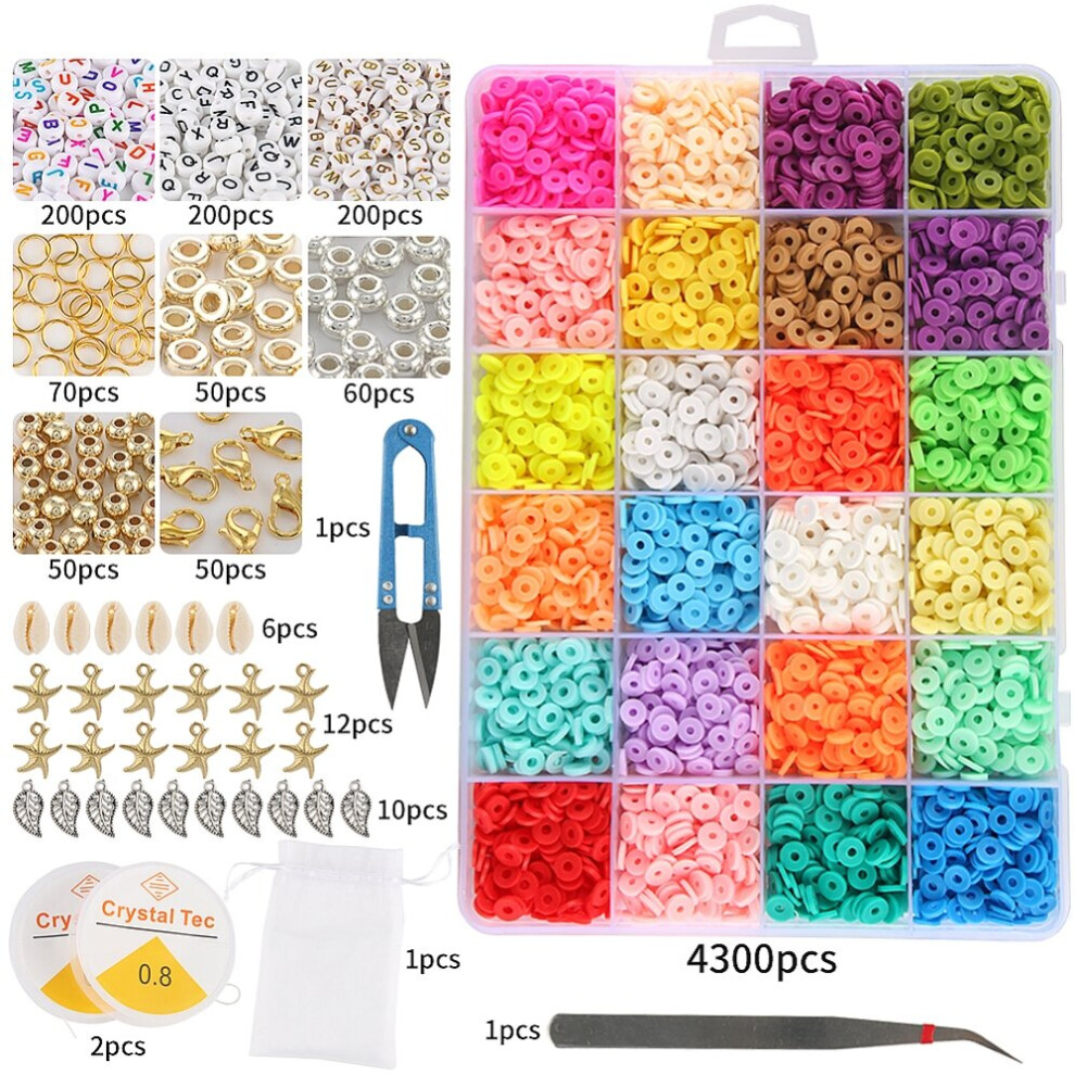 4500pcs Clay Flat Beads 6mm Multicoloured Assortment Set For Bracelets Necklace Jewelry Making DIY Kits
