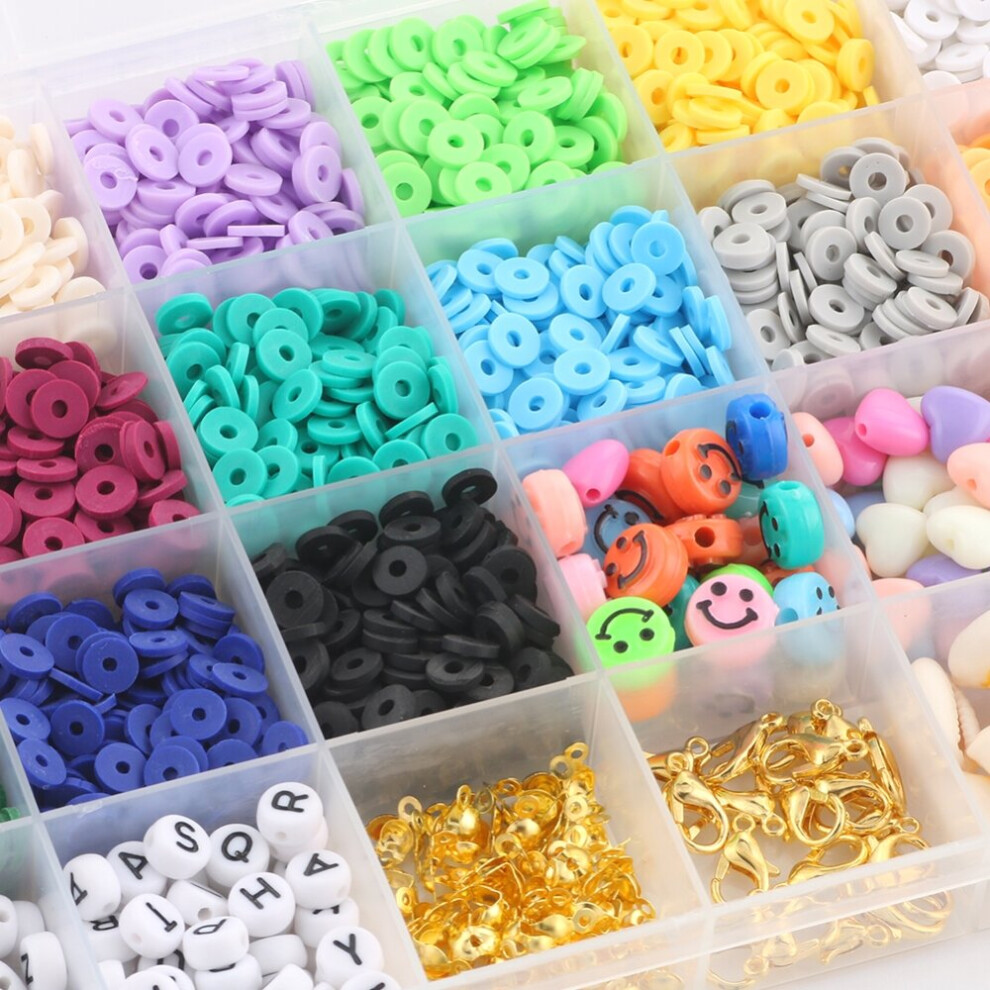1Box Mix Polymer Clay Acrylic Jewelry Making Kits Soft Pottery Spacer ?Beads For Jewelry Making DIY Kids Girls Bracelet Necklace