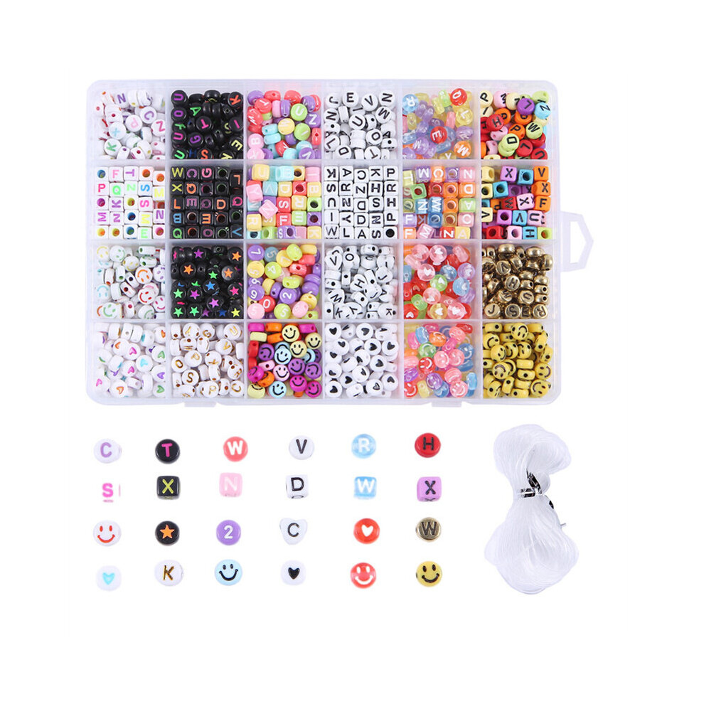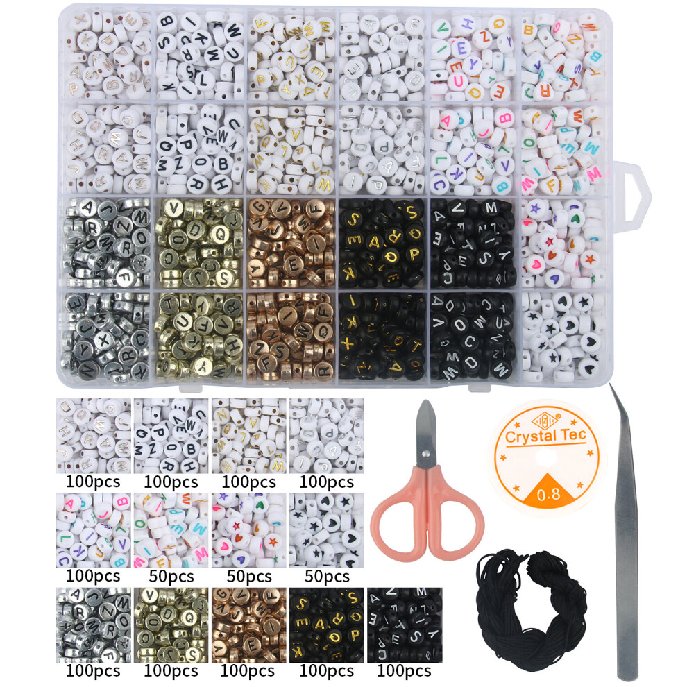 1250pcs Letter Acrylic Beads Jewelry Making Kits Round Square Alphabet Spacer Beads for Kids Girl Bracelet Necklace Diy Kits Set