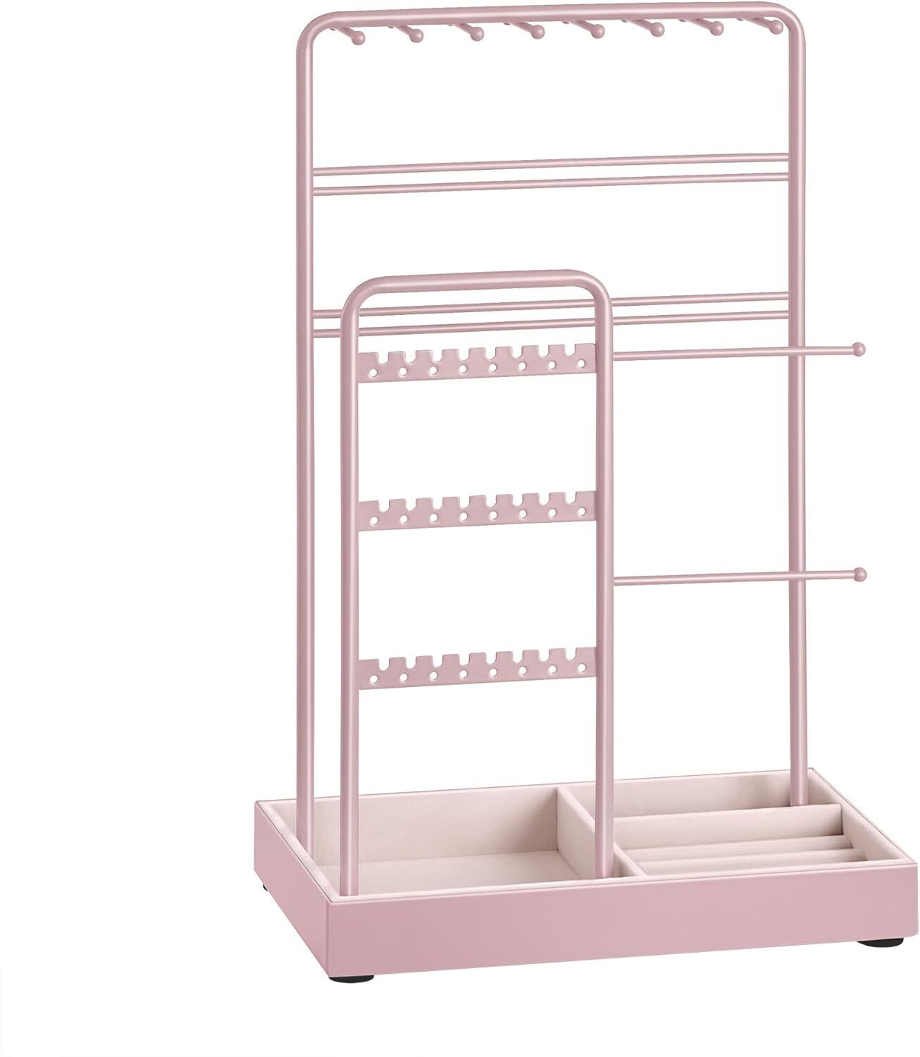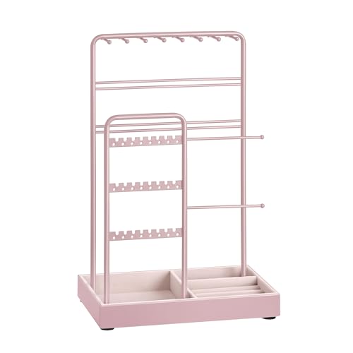 SONGMICS Jewellery Stand, Jewellery Organiser, Jewellery Display Stand with Metal Frame and Velvet Tray, Earring Bracelet Holder, Necklace Stand, for Studs, Rings, Gift Idea, Jelly Pink JJS021R01