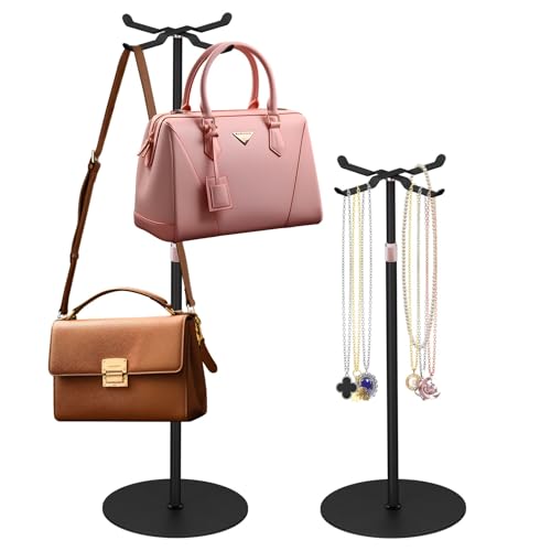 Raweao Bag Display Stand, 2 Pack Handbag Storage Organiser for Closet, Heavy Duty Metal Jewellery Stand Organiser Racks for Counter Closet Bedroom Hat Jewelry Bags Display Rack(Black)