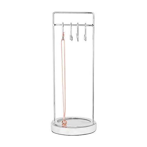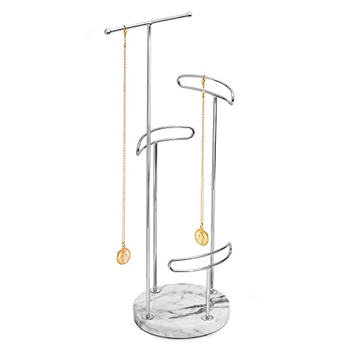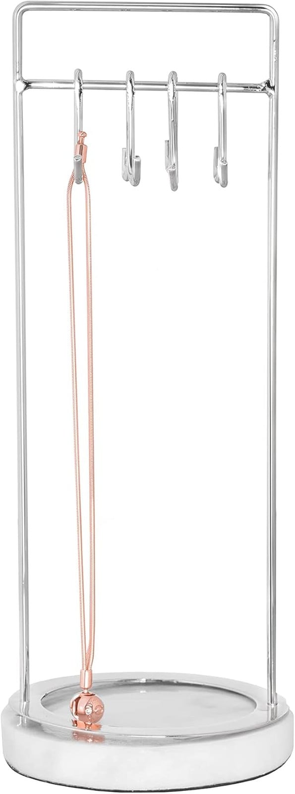 Sasha Morel Hanging Jewellery Organiser Stand with Marble Tray | Necklace Stand Display and Earring Holder Bedroom Decor | Hanging Storage for Necklaces, Bracelets, Earrings (Silver)