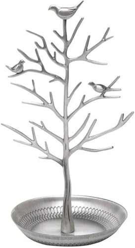 Discoball - Jewellery Display/Stand/Holder - New Antique Silver Bronze Birds Tree Earring Necklace Bracelets Jewelry Holders Hanging Organiser Rack Tower(Ancient Sliver)