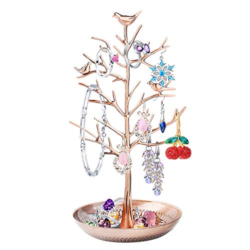 Discoball Jewellery Stand, Jewellery Tree Jewellery Organiser Stand Earring Holder Rose Gold Birds Tree Earring Stand Necklace Bracelets Jewelry Holders Hanging Organiser Rack Tower(Rose Gold)