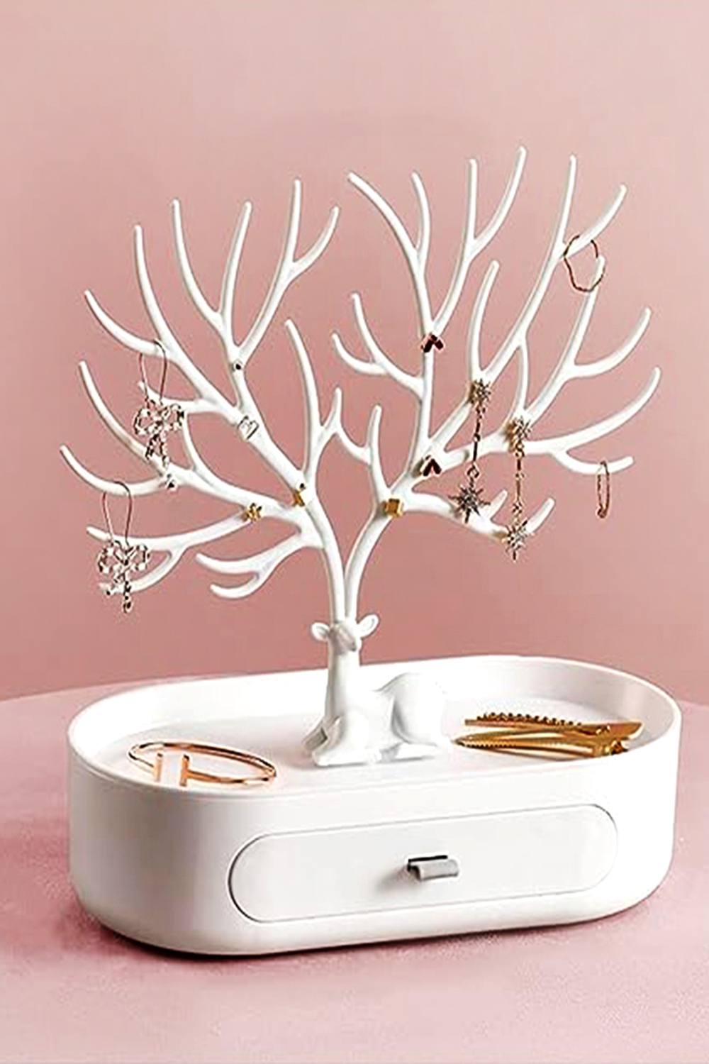 penobon Antler Jewellery Organiser Stand with Drawer, Plastic 3 in 1 Jewellery