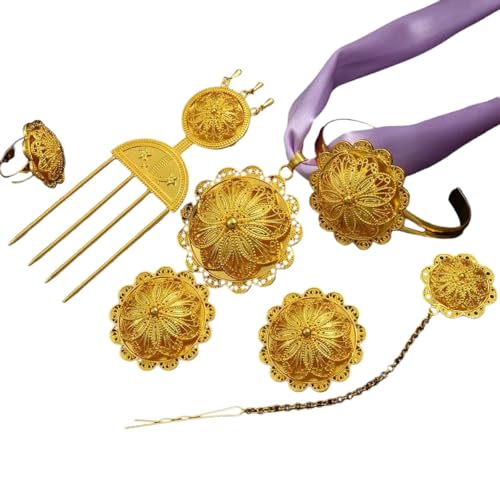 SBHXTDM Ethiopian Jewelry Sets Necklace Earrings Ring Hairpin Forehead Chain Bracelet Eritrean African Ethnic Bridal