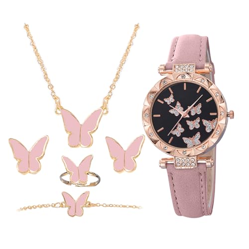 Womens Watches Set - Leather Bracelet Watch, Butterfly Design | Fashion Bracelet Accessories, Jewelry Sets for Women for Stylish Gift Ideas for Birthday Mother's Day or Special Occasions for Mother
