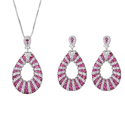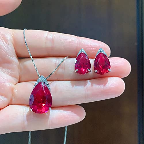 SFZSUK Ruby Gemstone High Carbon Diamond Pendant Necklace Earrings Wedding Jewelry Sets Accessories Gift for Women