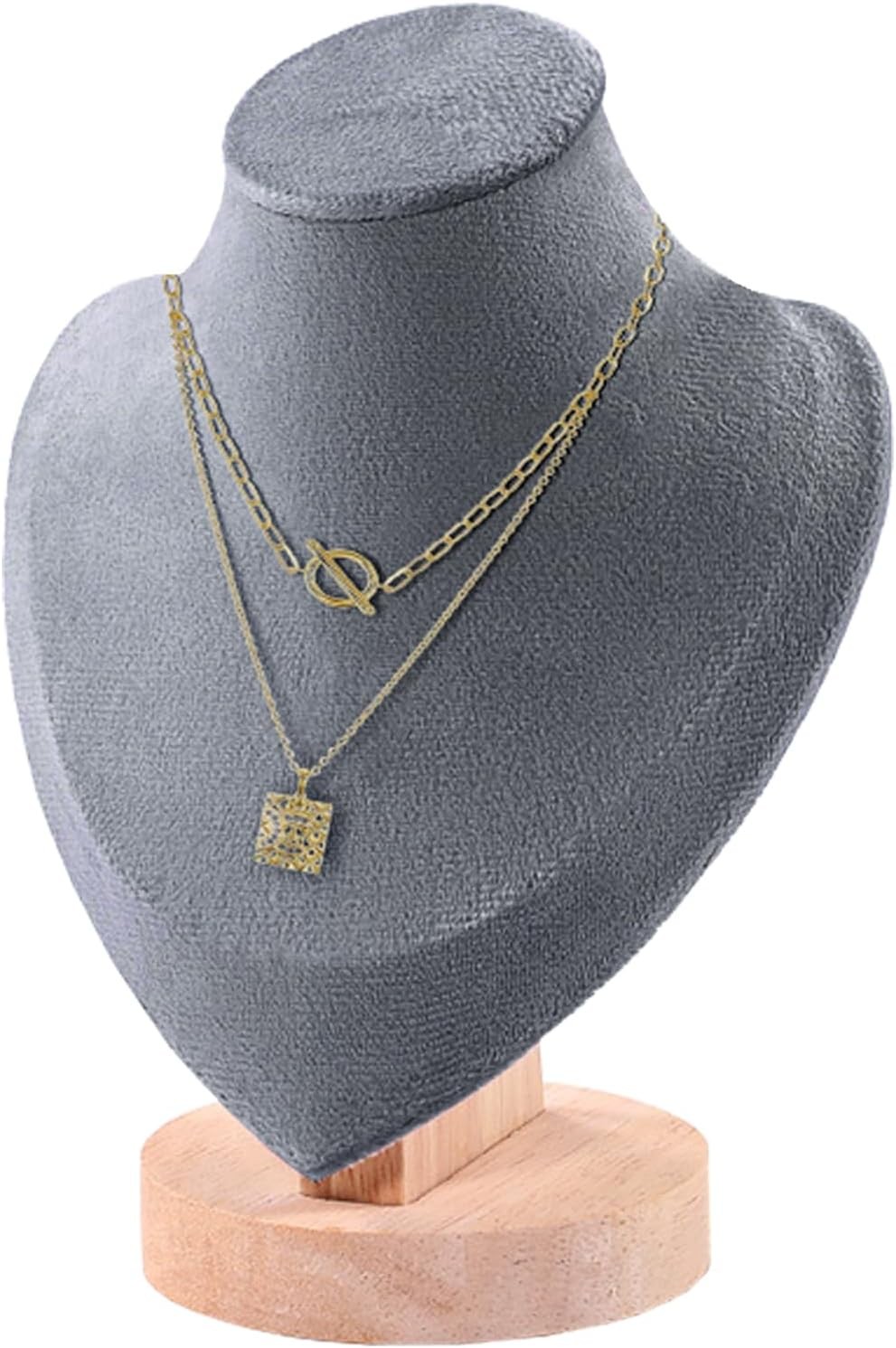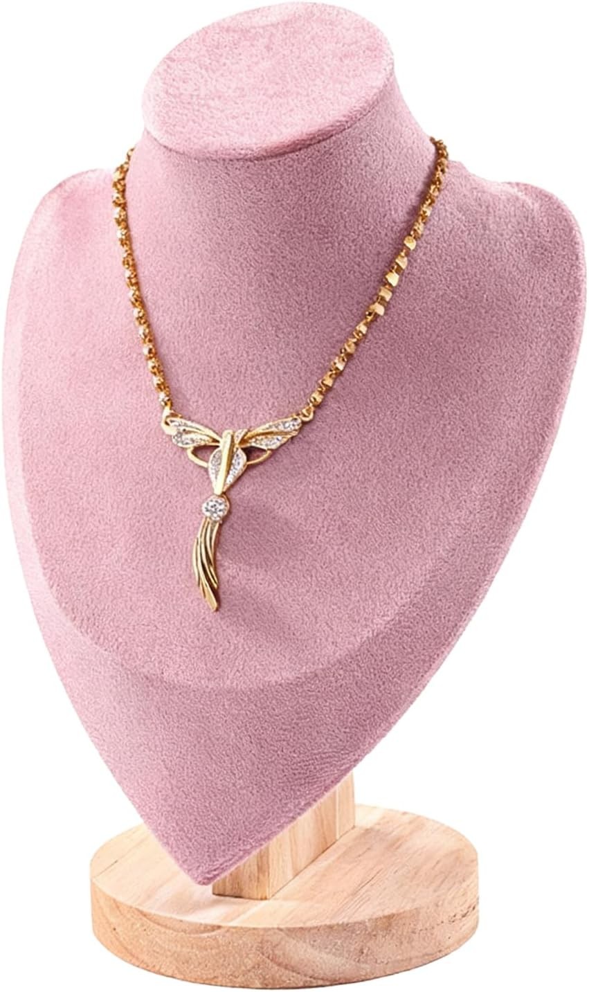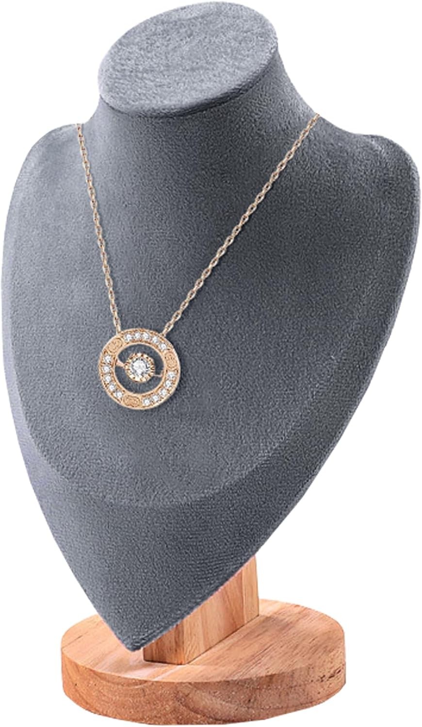 Velvet Necklace Display Stand Jewelry Bust Display Stands with Wood Base Manneq