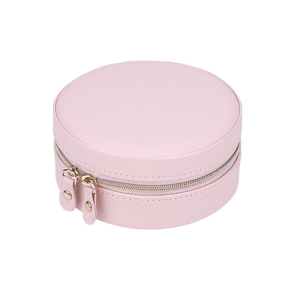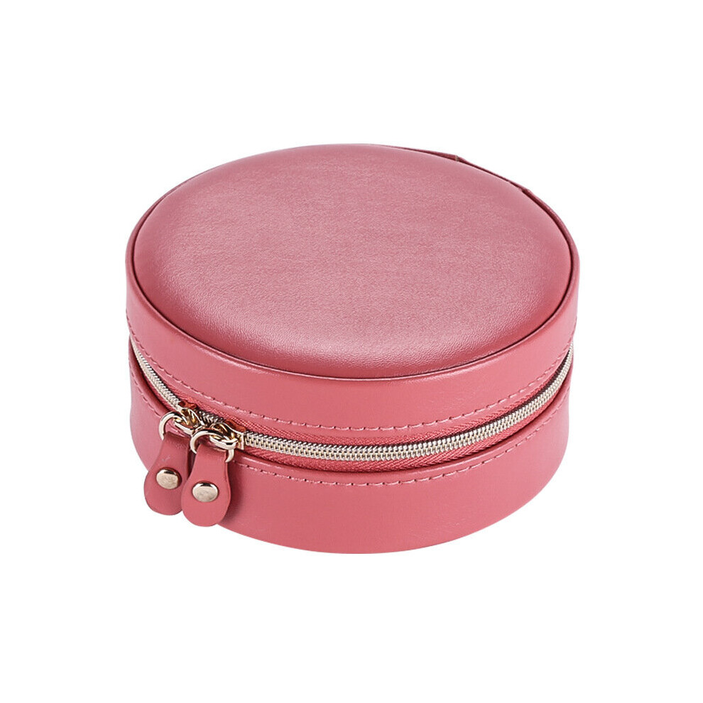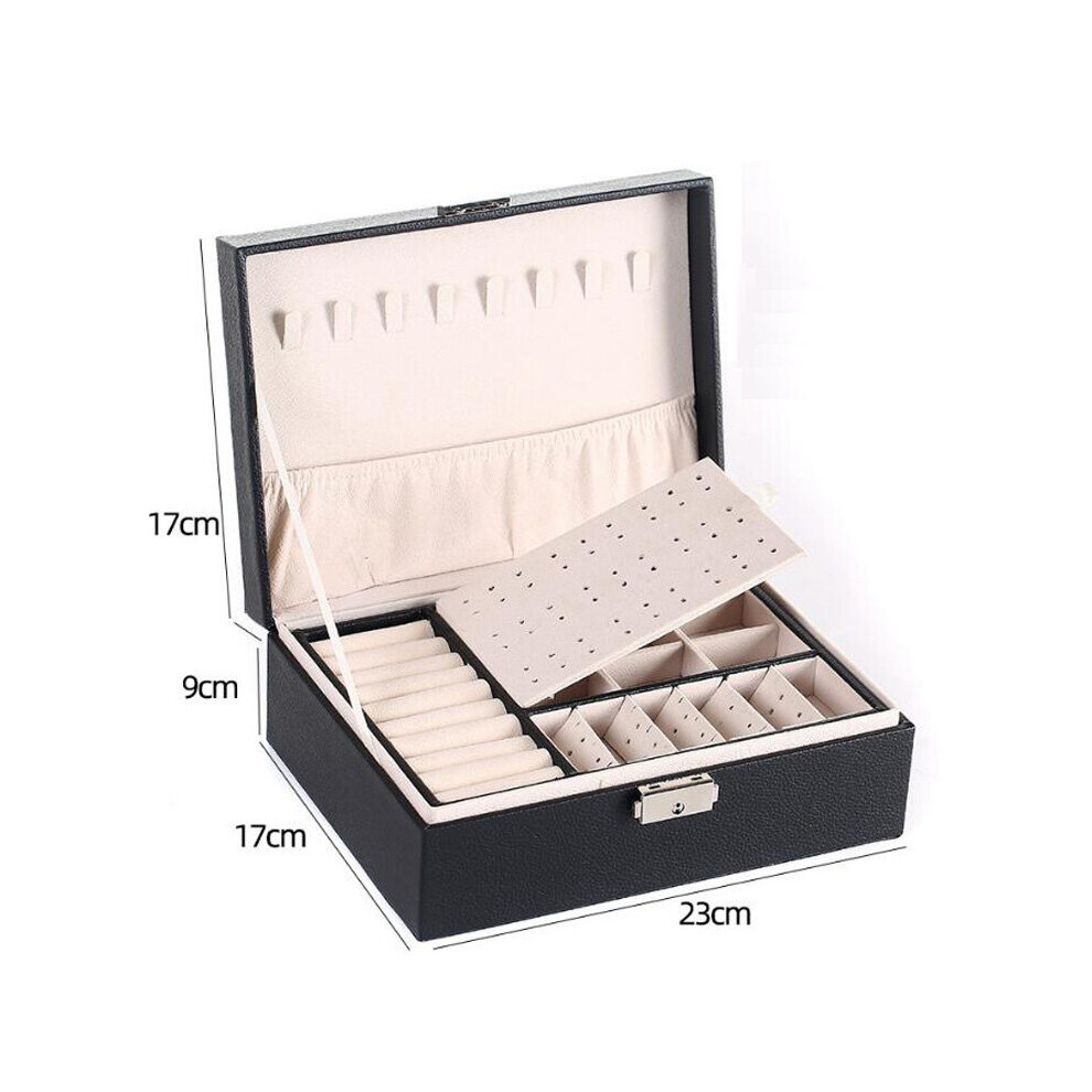 Travel Size Jewelry Organizer Box PU Leather 2-Layer Earring Holder Necklace with Mirror Jewlery Box