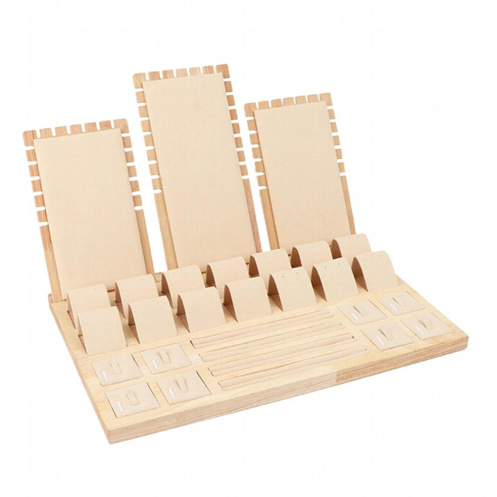 Wooden Green/Unqiue Beige Vevlet Case Necklace Organizer Jewlery Packaging Ring Earring Holder Bracelet Stand